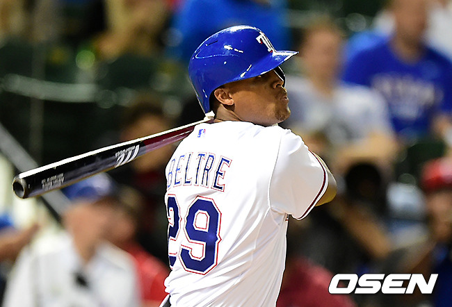 9회말 텍사스 벨트레가 끝내기 안타를 날리고 타구를 바라보고 있다 ./ jpnews@osen.co.kr