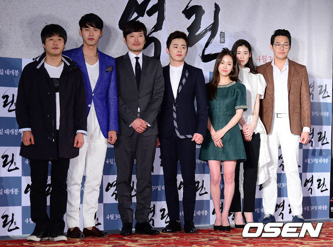 2일 오전 서울 광진구 롯데시네마 건대입구에서 열린 영화 '역린' 제작보고회에서 이재규 감독, 현빈, 정재영, 조정석, 한지민, 정은채, 박성웅이 포토타임을 갖고 있다.