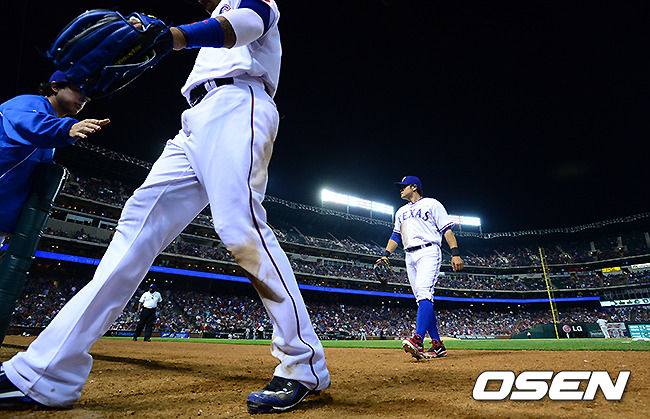 텍사스 추신수가 9회초 수비를 마치고 더그아웃으로 향하고 있다 ./ jpnews@osen.co.kr