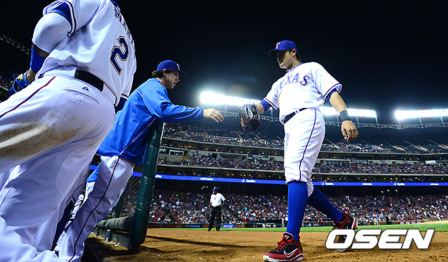 텍사스 추신수가 9회초 수비를 마치고 더그아웃으로 향하고 있다 ./ jpnews@osen.co.kr