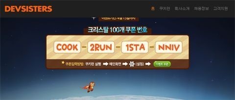 데브시스터즈는 2일 쿠키런 1주년을 맞아 크리스털 100개를 지급하는 이벤트를 오는 13일까지 진행한다. 게임을 실행한 뒤 메인화면 설정에서 이벤트 쿠폰 번호를 입력하면 된다. 쿠폰 번호는 ‘COOK-2RUN-1STA-NNIV'다. 단 1계정 당 1회만 입력할 수 있다.
