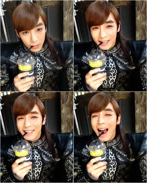 공개된 사진 속 진이한은 MBC 월화드라마 '기황후'에서 맡고 있는 탈탈 역으로 분장을 한 모습이 담겨 있다. 그는 음료수가 든 컵을 들고 빨대를 입으로 무는 등의 다양한 포즈와 함께 익살스럽고 귀여운 표정을 짓고 있어 눈길을 사로잡는다.