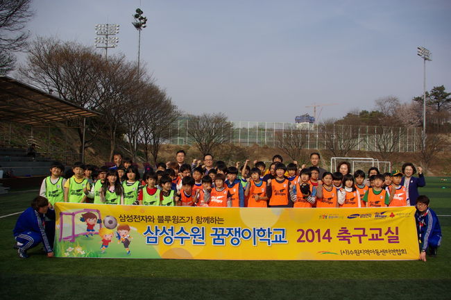 수원 지역의 저소득 자겆 어린이들에게 체계적으로 축구를 배울 수 있는 기회를 주는 '삼성 수원 꿈쟁이학교 축구 아카데미'가 2일 격려행사를 갖고 14년 본격적인 활동을 시작했다.