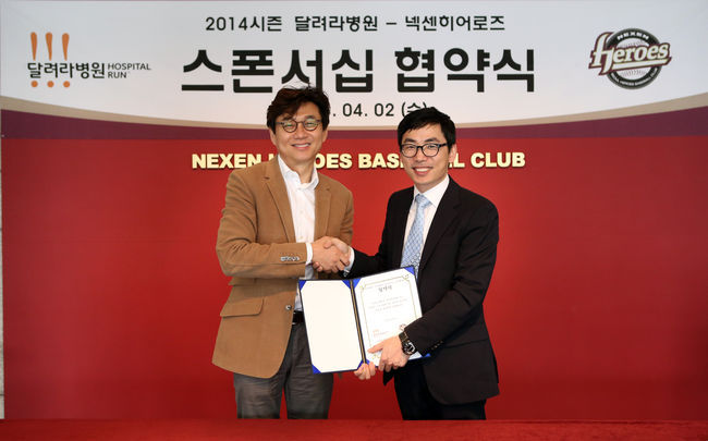 넥센 히어로즈는 2일 오후 4시 목동구장에서 척추관절 치료 병원 달려라병원과 2014시즌 스폰서십(광고후원) 계약을 체결했다.
