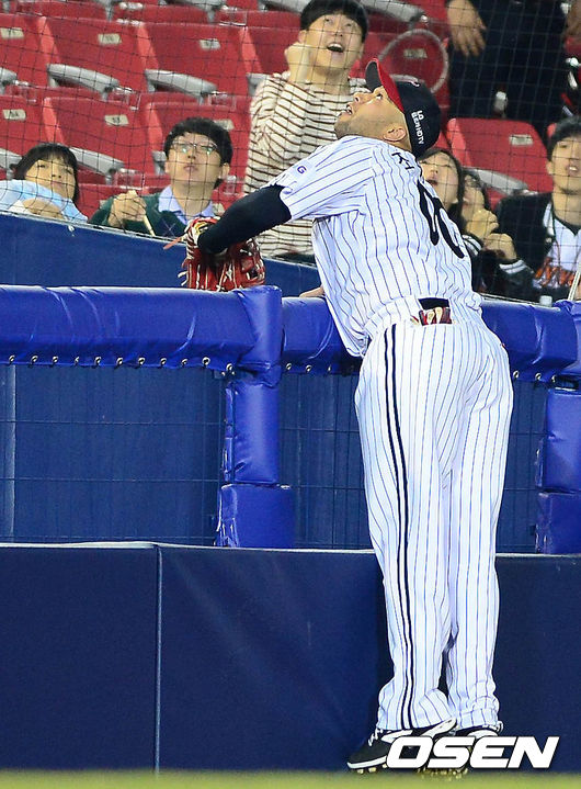 2일 오후 서울 잠실구장에서 열린 '2014 한국야쿠르트 세븐 프로야구' LG 트윈스와 SK 와이번스의 경기 3회초 1사 1루 정상호의 뜬 파울볼을 조쉬 벨이 쫓아가고 있다.