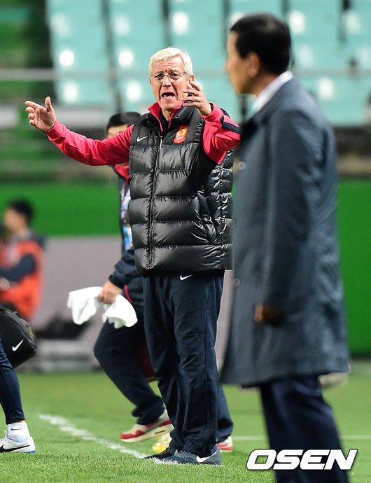 전반 광저우 리피 감독이 심판 판정에 불만스러운 어필을 하고 있다.