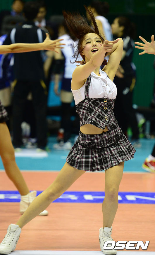 GS칼텍스 치어리더가 코트 위에서 공연을 펼치고 있다./ rumi@osen.co.kr