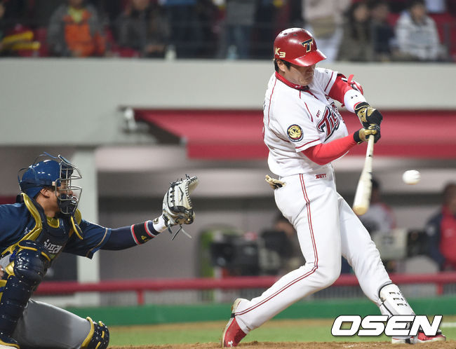 2일 오후 광주-기아챔피언스 필드 에서 열린 '2014 한국야쿠르트 세븐 프로야구' KIA 타이거즈와 NC 다이노스 경기, 7회말 2사 2,3루 김주찬 2타점 적시타를 날리고 있다.
