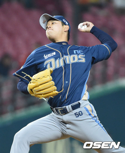 2일 오후 광주-기아챔피언스 필드 에서 열린 '2014 한국야쿠르트 세븐 프로야구' KIA 타이거즈와 NC 다이노스 경기,NC 손정욱이 팀 두번째 투수로 등판 공을 뿌리고 있다.