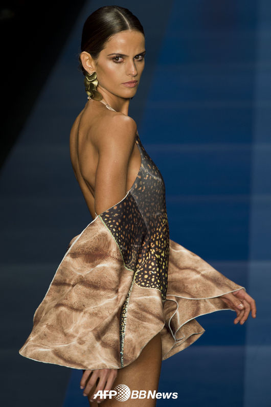 [OSEN=사진팀] 2일(현지시간) 브라질 상 파울로에서 열린 '상파울로 패션 위크(SPFW)' 아구아데코코의 2015 여름 컬렉션 무대에서 한 모델이 의상을 선보이고 있다.