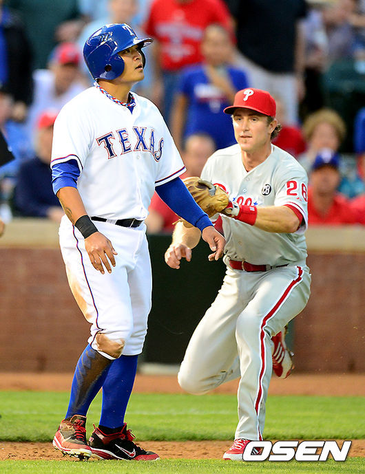 3일(이하 한국시간) 미국 텍사스주 알링턴 글로브 라이프 파크에서 '2014 메이저리그' 텍사스 레인저스와 필라델피아 필리스의 경기가 열렸다.