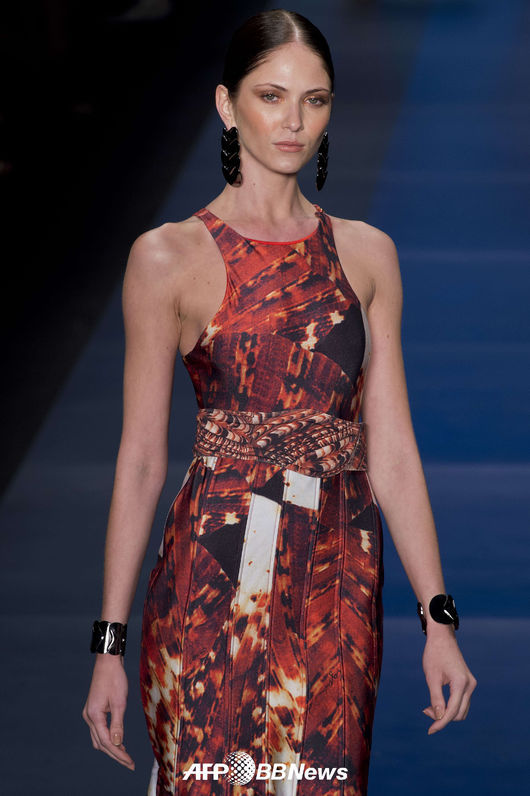 [OSEN=사진팀] 2일(현지시간) 브라질 상 파울로에서 열린 '상파울로 패션 위크(SPFW)' 아구아데코코의 2015 여름 컬렉션 무대에서 한 모델이 의상을 선보이고 있다.