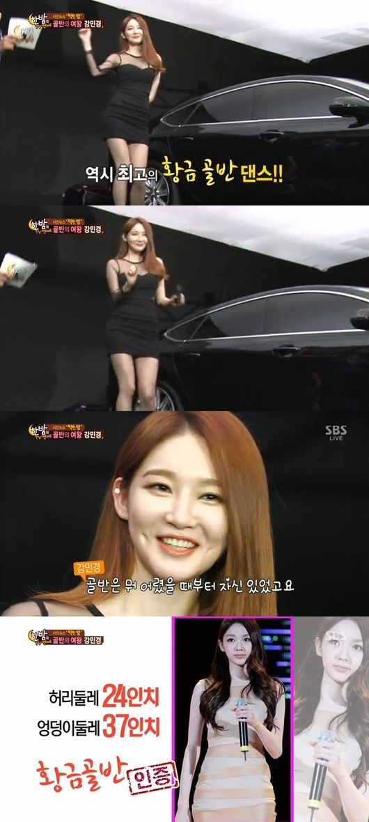 강민경은 지난 2일 오후 방송된 SBS '한밤의 TV연예'에 출연해 골반댄스를 추며 '황금골반'으로 알려진 자신의 골반을 뽐냈다.
