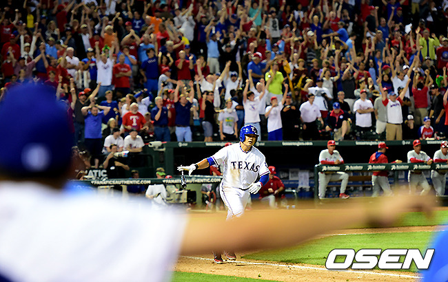 텍사스는 3일(이하 한국시간) 미국 텍사스주 알링턴 글로브 라이프 파크에서 벌어진 '2014 메이저리그' 필라델피아 필리스전에서 4-3으로 역전승을 거뒀다. 9회 마지막 공격에서 상대 마무리투수 파펠본을 공략하면서 드라마틱한 승리를 따냈다.