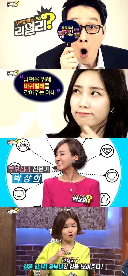 지난 2일 첫 방송된 '부부 감별쇼 리얼리'는 지금껏 보지 못한 사연들을 등장시키며 남다른 토크쇼의 등장을 알렸다. 첫 방송에서 소개된 사연은 '바퀴벌레 갈아주는 아내', '동물 짝짓기에 집착하는 부부', '우리 엄마랑 결혼한 내 남편' 등이다.