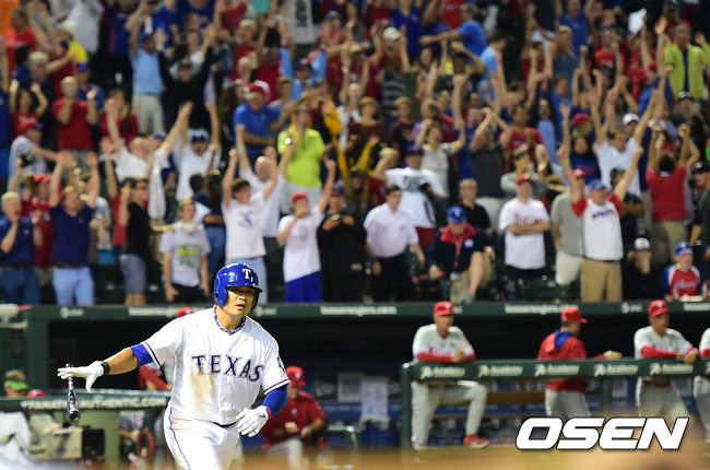 추신수는 3일(이하 한국시간) 미국 텍사스주 알링턴 글로브 라이프 파크에서 벌어진 '2014 메이저리그' 필라델피아 필리스 전에 선발 좌익수 및 1번 타자로 출전, 9회 끝내기 밀어내기 안타를 포함해 4타수 1안타 1볼넷 1타점을 기록했다. 타율은 2할7푼3리로 조금 떨어졌지만 그 떨어진 타율이 생각나지 않을 정도의 강한 마무리였다.
