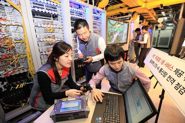 KT는 서울시 서초구 양재동 KT LTE 이노베이션 센터를 포함한 전국의 이동통신망을 재정비하며 품질 점검을 실시한다.