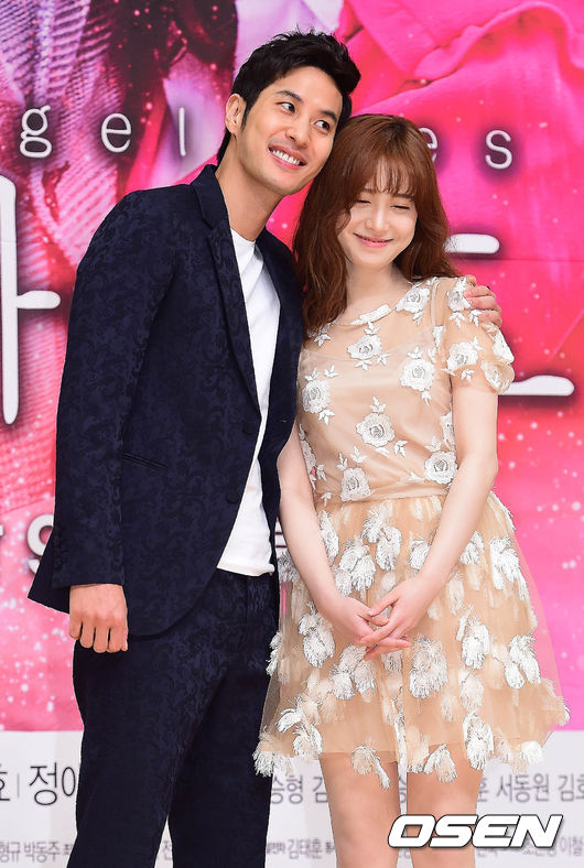 3일 오후 서울 양천구 목동SBS에서 열린 SBS 새 주말드라마 '엔젤아이즈' 제작발표회에서 김지석과 구혜선이 포토타임을 갖고 있다.