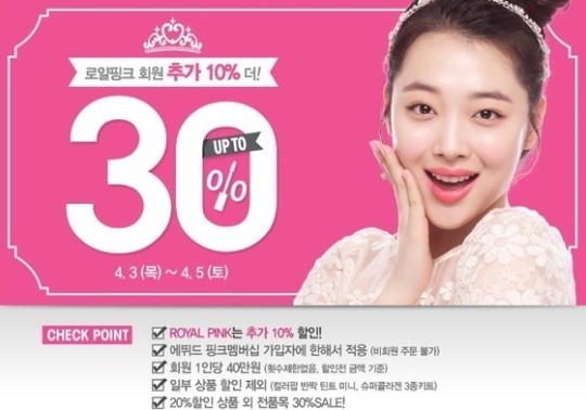 에뛰드하우스는 3일 홈페이지를 통해 오는 5일까지 3일간 핑크멤버십 회원을 대상으로 최대 30% 할인 이벤트를 실시한다고 공지했다.