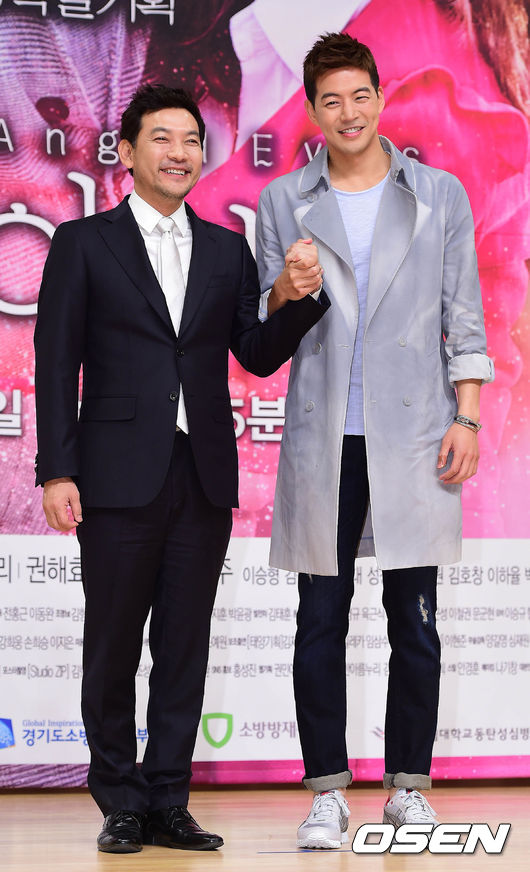 3일 오후 서울 양천구 목동SBS에서 열린 SBS 새 주말드라마 '엔젤아이즈' 제작발표회에서 정진영과 이상윤이 포토타임을 갖고 있다.