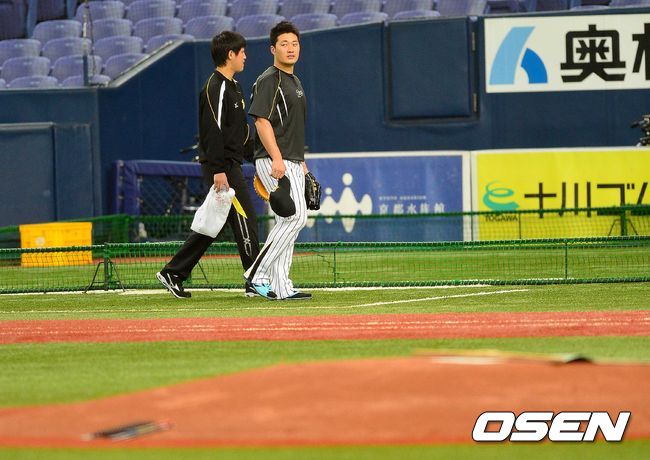오승환이 3일 오후 일본 오사카 교세라돔에서 열리는 '2014 일본프로야구' 한신 타이거스 대 주니치 드래건스의 경기를 앞두고 훈련을 마친 뒤 그라운드를 나서고 있다.