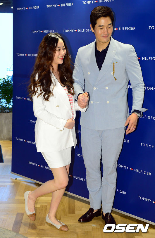 3일 오후 서울 강남구 신사동 타미힐피거 가로수길 플래그십 스토어에서 진행된 '타미 힐피거 2014 봄 캡슐 컬렉션'에서 유지태&김효진 부부가 포토월을 빠져나가고 있다.