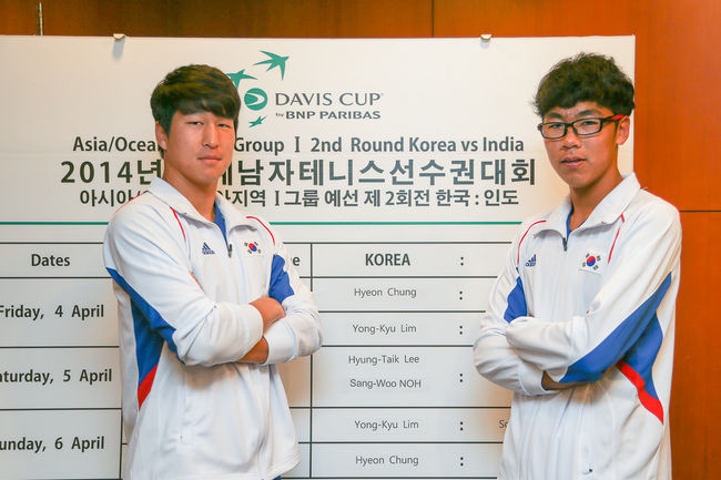 인도는 솜데브 데브바르만(단식 88위), 사남 싱(371위), 로한 보파나(복식 14위), 사케스 미네니(복식 188위)를 선발로 내세웠다. 첫 날 단식에 정현을 내세우고, 두 번째 단식에는 임용규를 투입하며 둘째 날 복식에는 이형택-노상우 나선다.