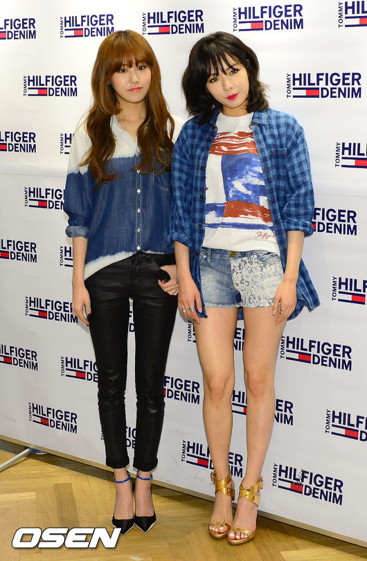 3일 오후 서울 강남구 신사동 타미힐피거 가로수길 플래그십 스토어에서 진행된 '타미 힐피거 2014 봄 캡슐 컬렉션'에서 가윤&현아가 포토타임을 갖고 있다.
