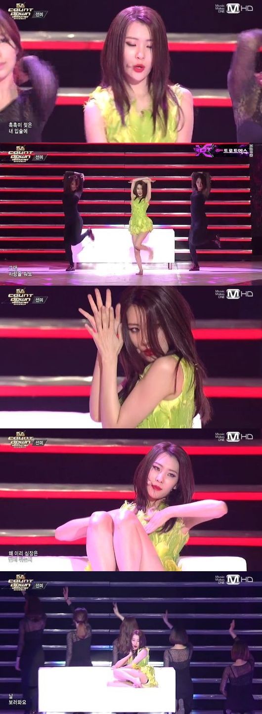 선미는 3일 오후 방송된 엠넷 '엠카운트다운 넘버원 아티스트 오브 스프링 2014'(이하 '글로벌 엠카운트다운')에서 곡 '보름달'의 무대를 꾸몄다.