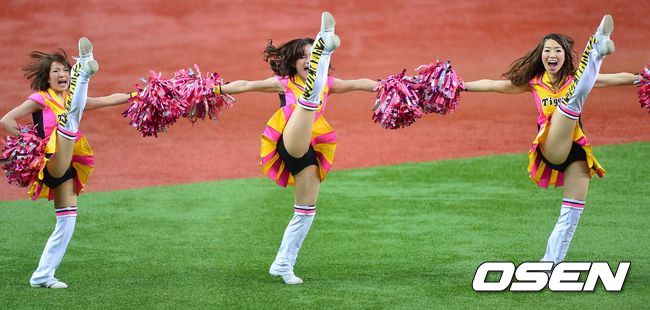 한신 치어리더가 멋진 공연을 선보이고 있다.
