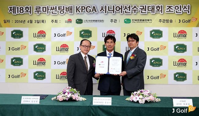 골프전문채널 J 골프(대표 김동섭)는 (주)씨피에프 루마코리아(회장 김우화), (사)한국프로골프협회(KPGA, 회장 황성하)와 함께 3일(목) 오후 4시 경기도 성남에 위치한 KPGA빌딩에서 ‘제18회 루마썬팅배 KPGA 시니어 선수권 대회’ 조인식을 가졌다.