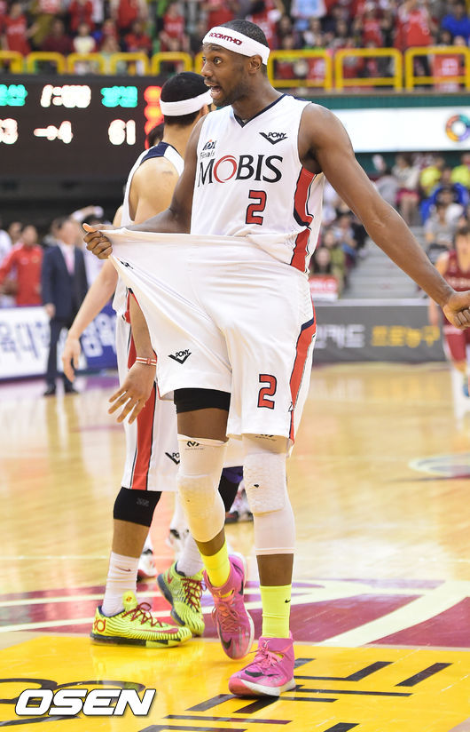 3일 오후 경남 창원실내체육관서 진행된 '2013-2014 프로농구 챔피언 결정전 2차전 창원 LG와 울산 모비스의 경기,4쿼터 모비스 벤슨이 판정에 항의하고 있다
