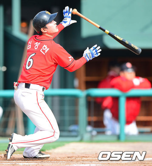 SK 유격수 김성현이 맹타를 휘두르며 역전승을 이끌었다.