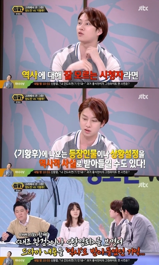 김희철은 13일 오후 방송된 JTBC '썰전-예능심판자'에서 “어린 친구들이 드라마 ‘기황후’를 역사의 전부라고 생각할 수 있다. 이게 문제가 된다”고 말했다.
