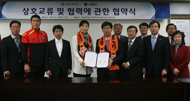 강원FC가 관동대학교와 상호교류 및 협력에 관한 업무협약(MOU)을 체결했다.
