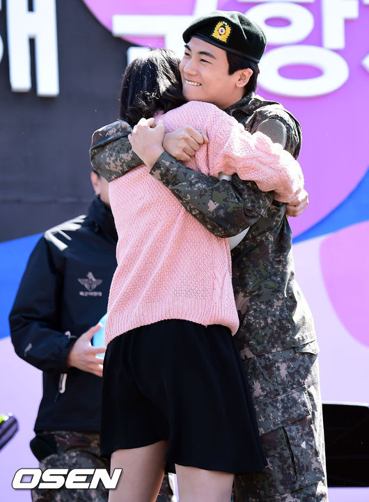 4일 경남 창원 진해시 중원로터리에서 진행된 '제52회 진해 군항제' 진해군악의장페스티벌 프린지 공연 앞선 이벤트 행사에서 진짜사나이 박형식이 여성참가자와 풍선 터트리기를 하고 있다.