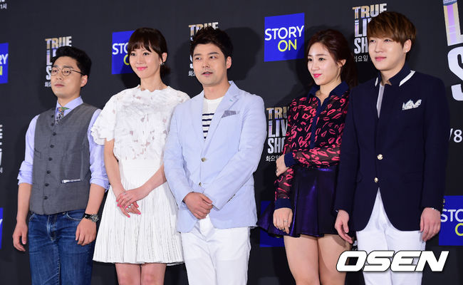 4일 오후 서울 상암동 CJ E&M 센터 미디홀에서 진행된 스토리온 '트루 라이브쇼' 제작발표회에서 이우성 염정아 전현무 최희 김태현이 포토타임을 갖고 있다.
