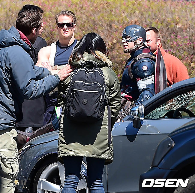 크리스 에반스,'스태프와 이야기 나누는 캡틴 아메리카'