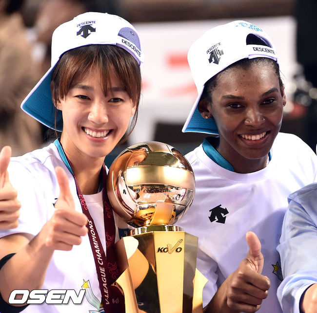 GS칼텍스 베띠와 한송이가 우승 기쁨을 나누고 있다. / soul1014@osen.co.kr