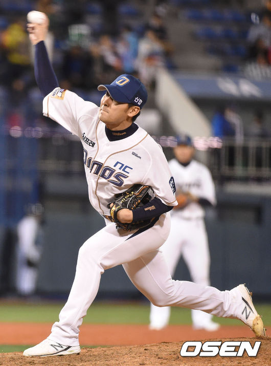 4일 오후 창원시 마산구장에서 열린 '2014 한국야쿠르트 세븐 프로야구' NC 다이노스와 넥센 히어로즈 경기,7회초 1사 NC 임창민이 공을 뿌리고 있다.