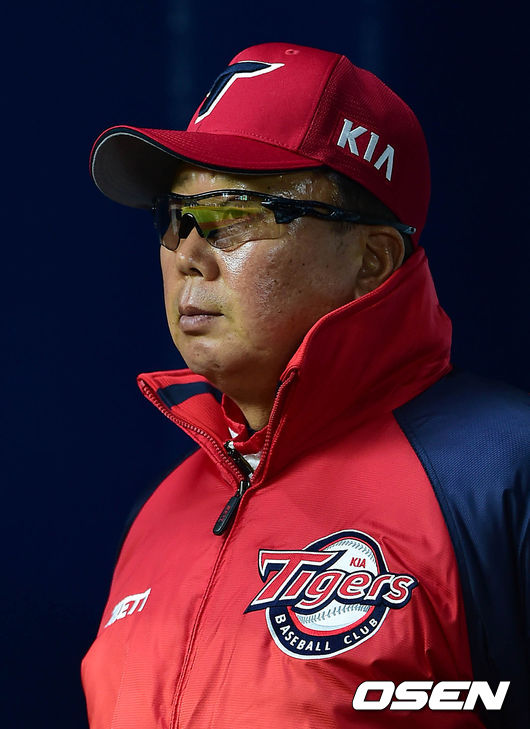 9회초 KIA 선동렬 감독이 경기를 바라보고 있다.