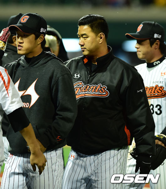 경기를 마치고 롯데 송승준이 코치진들과 하이파이브를 하고 있다./ rumi@osen.co.kr