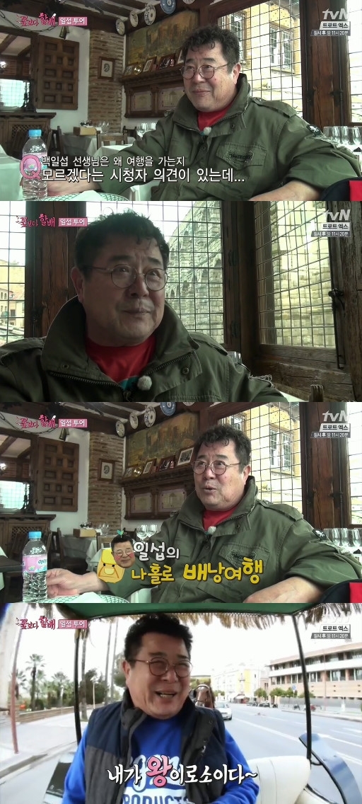 ‘꽃보다할배’ 백일섭이 “별로 즐거워보이지도 않는데 왜 여행을 가는지 모르겠다”는 일부 네티즌들의 지적에 그렇지 않다고 말했다.