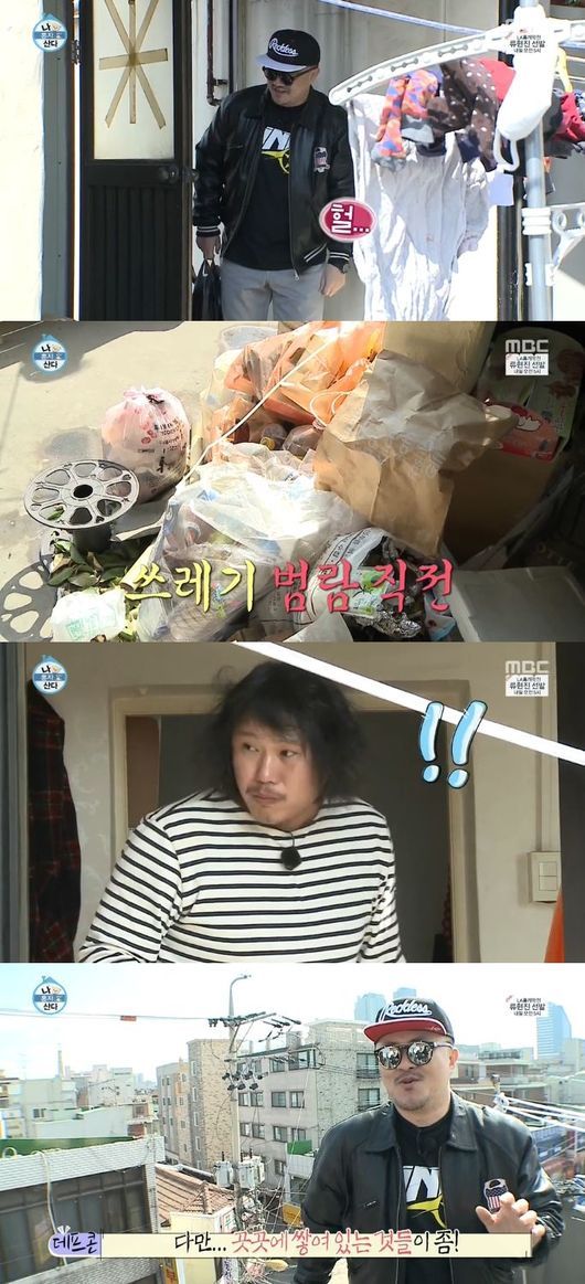 방송인 데프콘이 밴드 장미여관 육중완의 옥탑방에 쌓인 쓰레기를 보고 당황했다.
