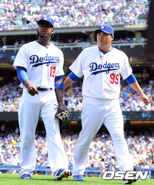 2회 어이없는 라미레스의 실책으로 추가 2실점 한 류현진이 라미레스를 위로 하고 있다./jpnews@osen.co.kr
