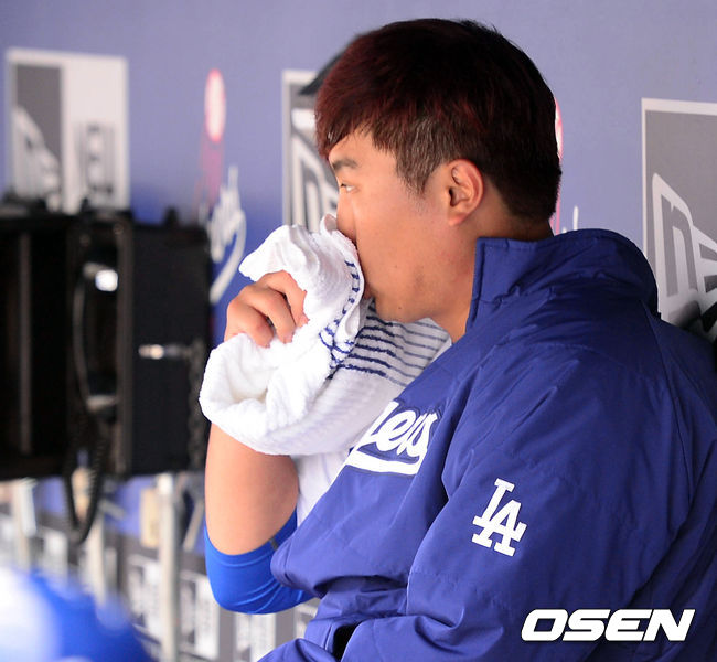 2회초 수비를 마친 류현진이 더그아웃에서 쉬고 있다./ jpnews@osen.co.kr