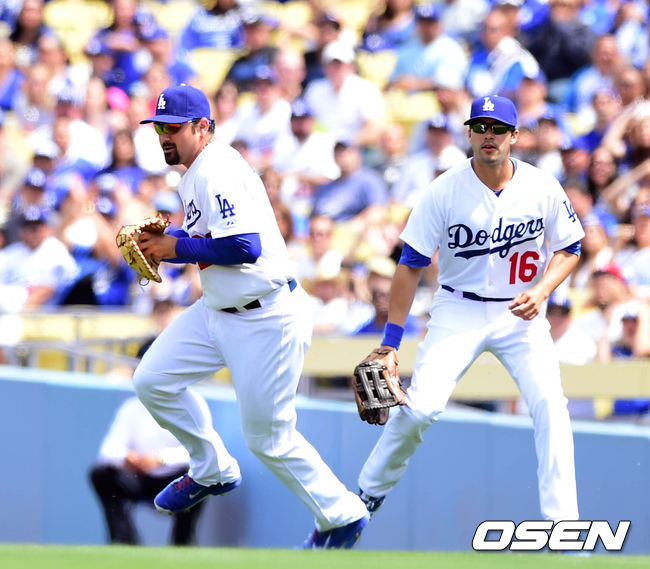 1회초 샌프란시스코 힉스의 평범한 플라이볼을 곤잘레스가 2루타로 만들어주고 있다./ jpnews@osen.co.kr
