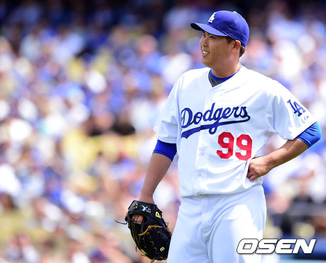 1회초 2사 만루 류현진이 상대 투수 보겔송에게 빗맞은 2타점 적시타를 맞고 아쉬워 하고 있다./ jpnews@osen.co.kr