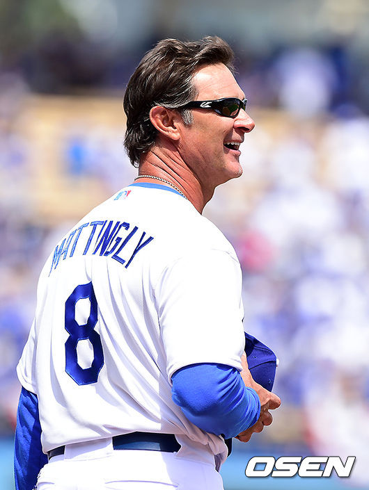 식전행사에서 다저스 매팅리 감독이 입장하며 미소짓고 있다. / jpnews@osen.co.kr
