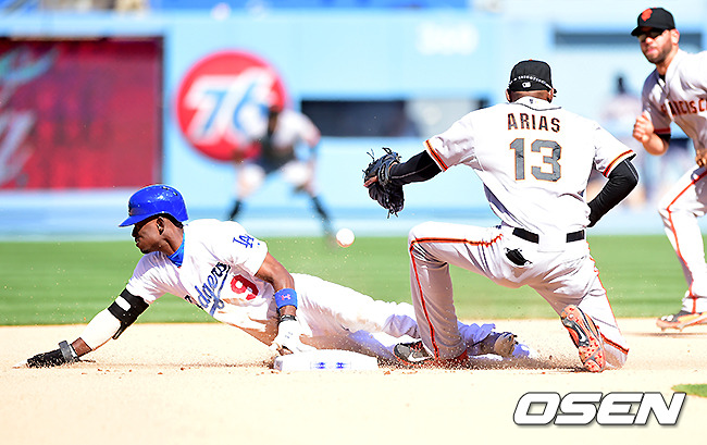 6회말 무사 1루에서 다저스 고든이 2루 도루에 성공하고 있다. / jpnews@osen.co.kr